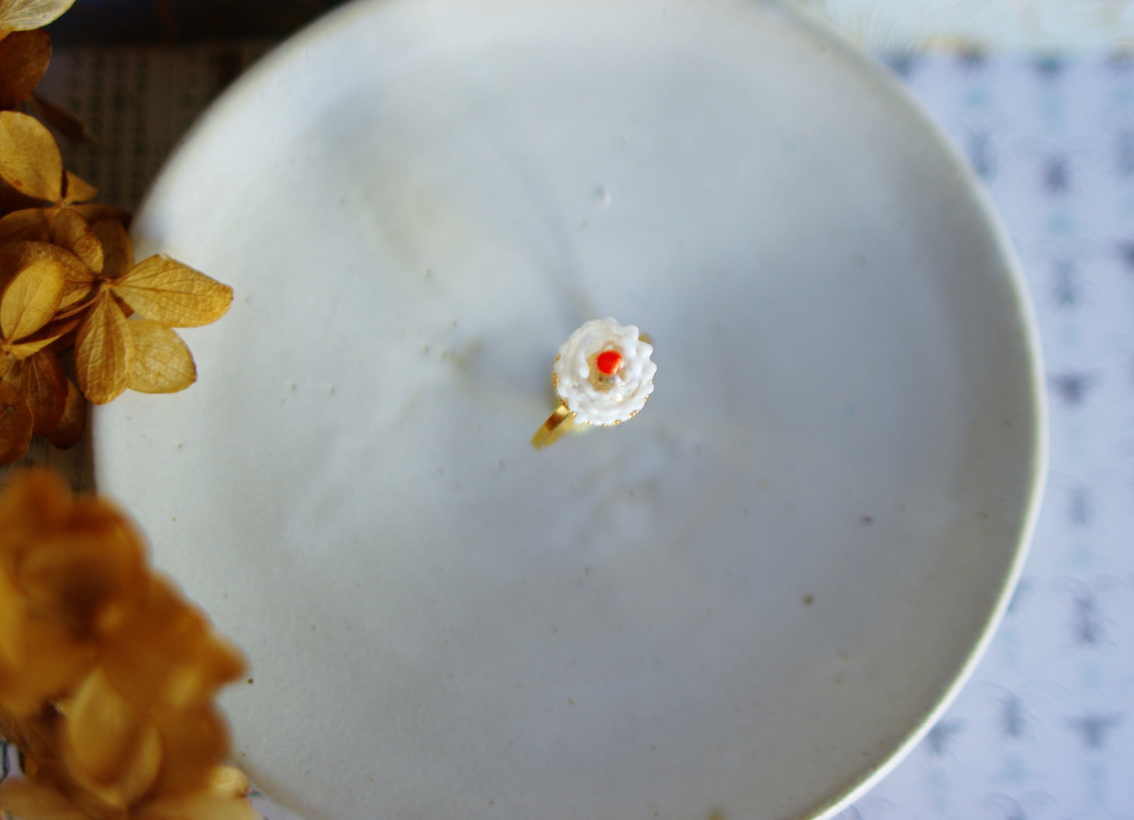 bague gâteau, cabochon en verre vintage, taille 53 FR non réglable, métal laiton doré sans chrome sans nickel.
