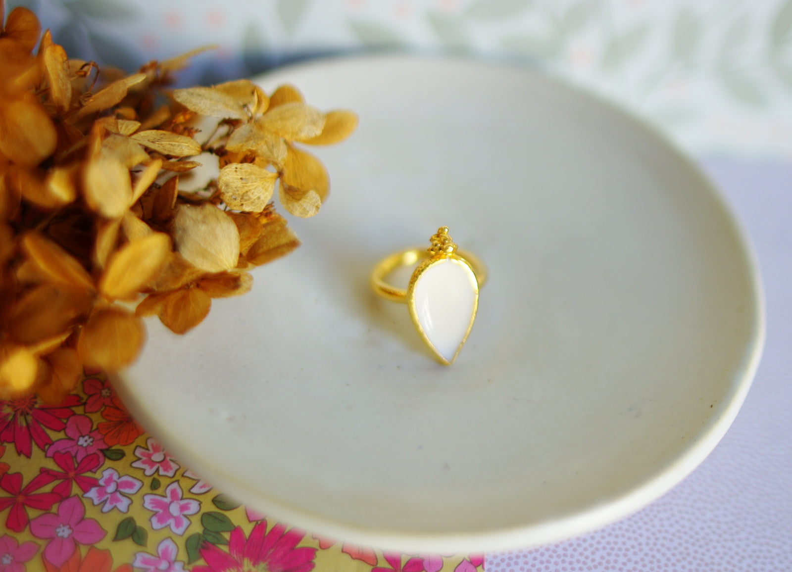 bague Néa, réglable de la taille 52 à 55 FR. Métal laiton doré, sans chrome sans nickel.