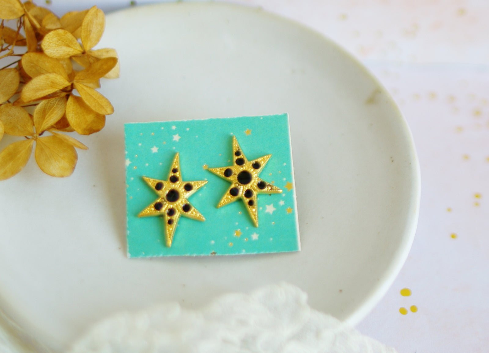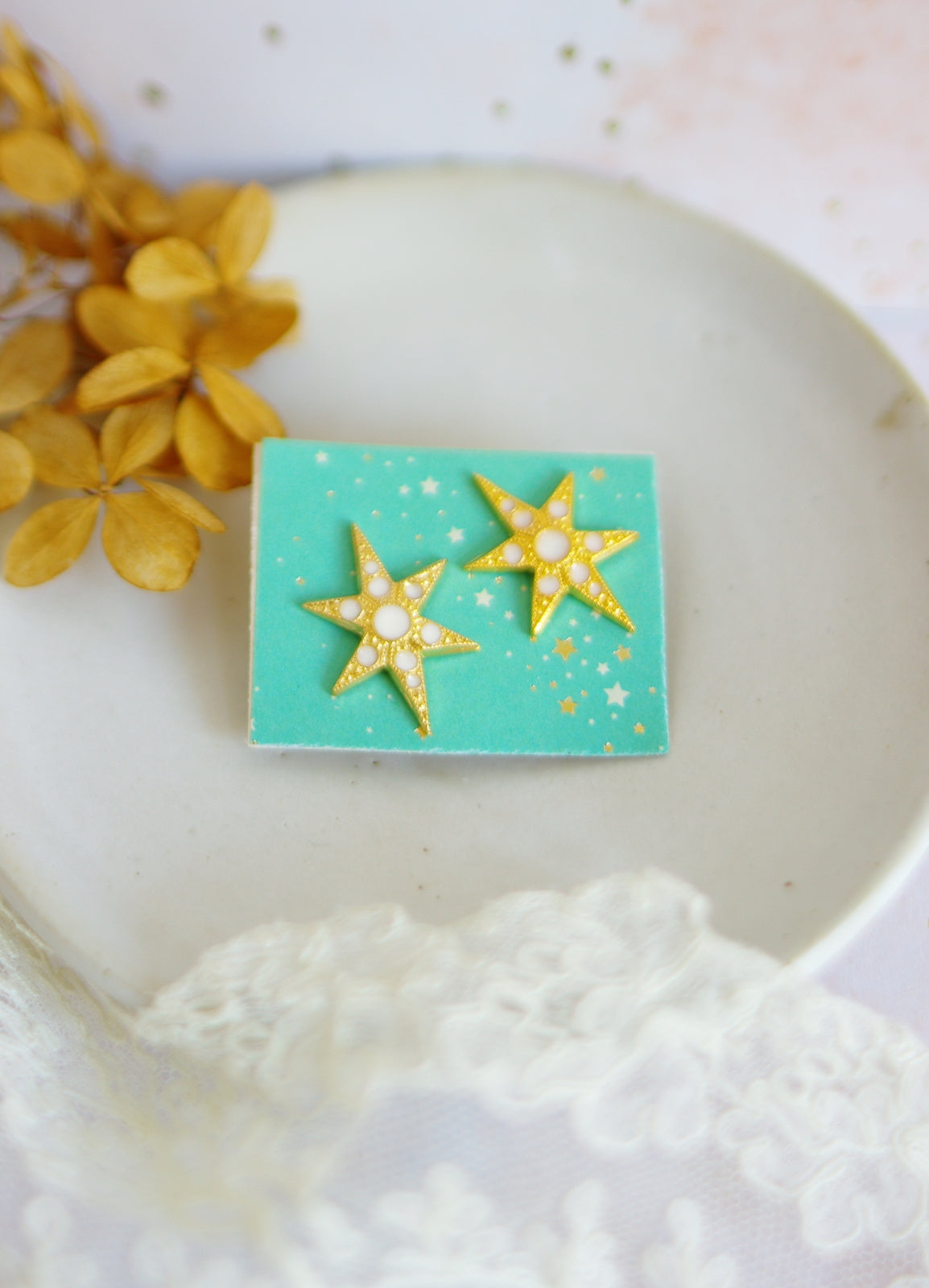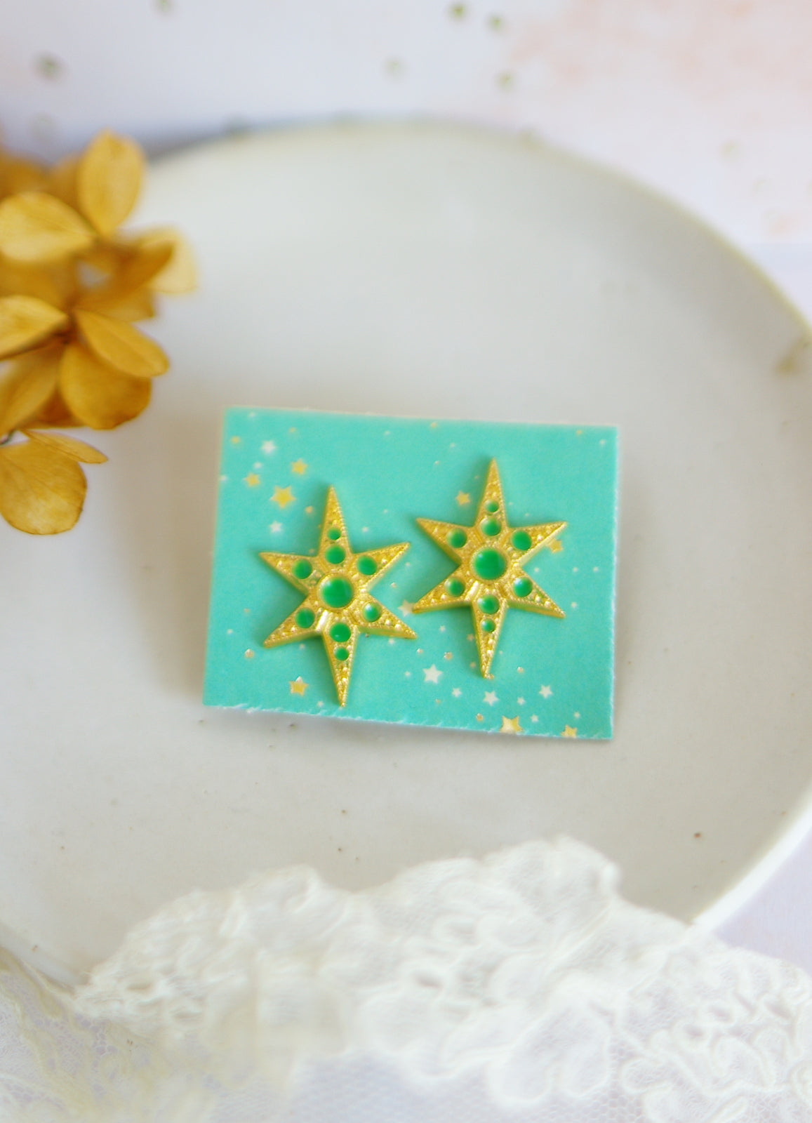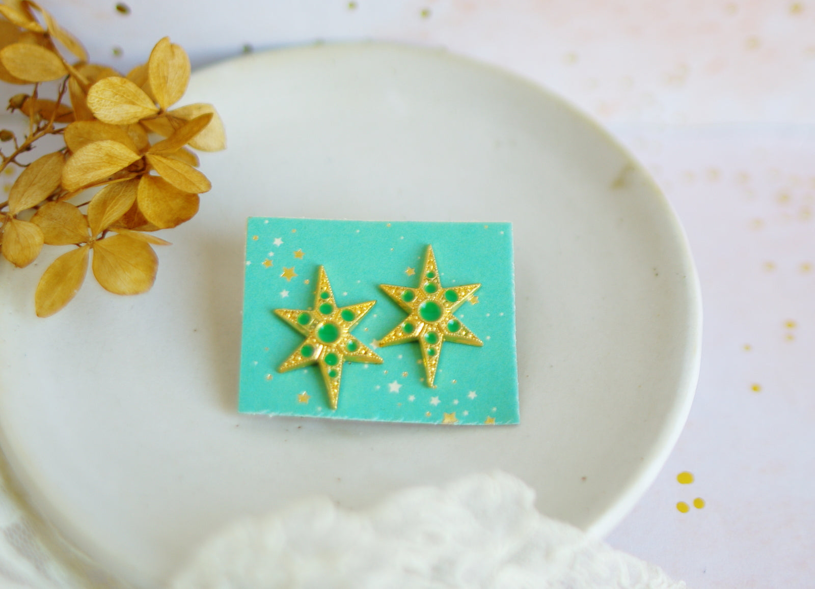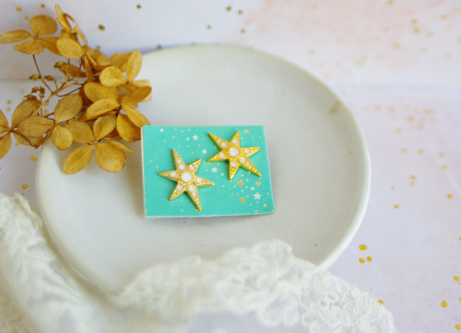 boucles d'oreilles Alix, dimensions 2 cm, émaillage à froid blanc vert ou noir. Métal doré à l'or sans chrome sans nickel.