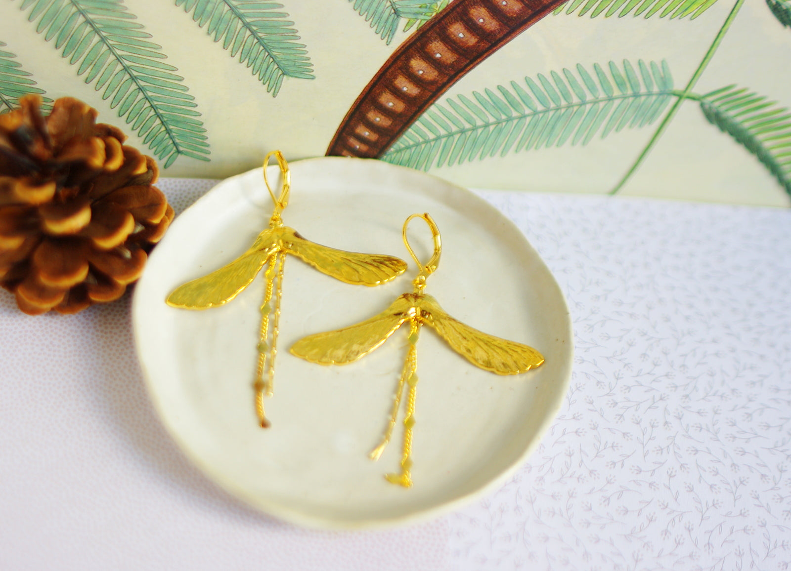 boucles d'oreilles automne, dimensions 5x6 cm. Métal laiton doré (0.1 micron) sans chrome sans nickel.