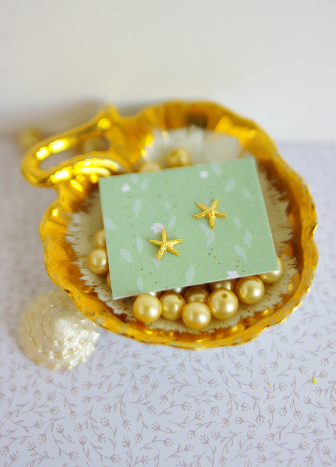 boucles d'oreilles minis étoiles de mer ou coquillages or, dimension 8 mm. Métal en laiton doré à l'or fin (0.1 micron) sans chrome sans nickel.
