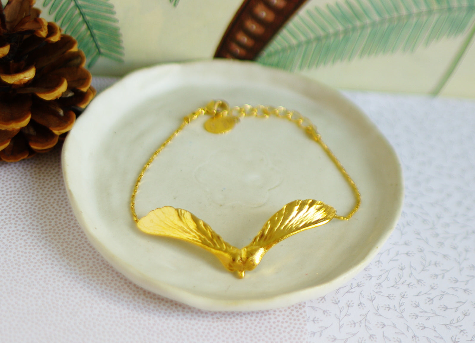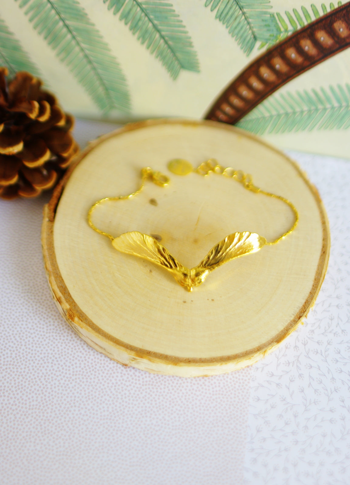 bracelet automne, dimensions 1,5x5 cm, longueur 14,5 cm avec chaine de rallonge de 3 cm. Métal laiton doré (0.1 micron) sans chrome sans nickel.