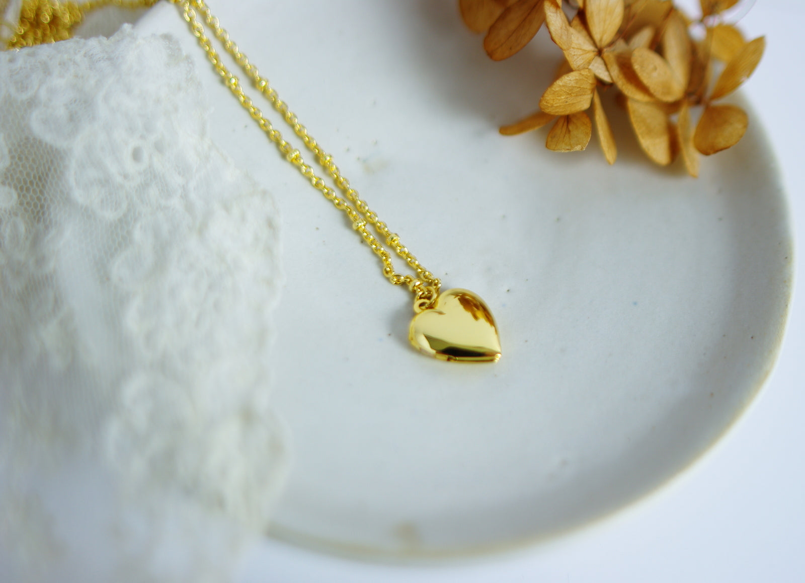 Pendentif locket cœur style bohème style rétro vintage or, le pendentif s'ouvre, intérieur est de 8 mm de diamètre, pendentif de 14 mm. Longueur 60 cm avec chainette de rallonge de 3 cm environ. Métal en laiton doré à l'or (0,1 micron) sans chrome sans nickel.